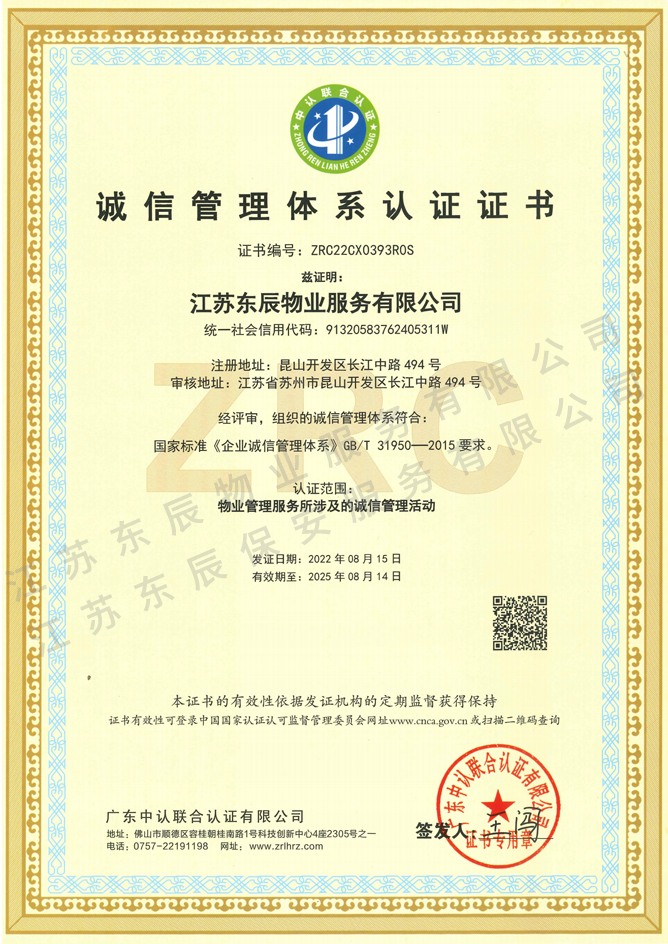 • 2022-2025年誠信管理體系認證證書